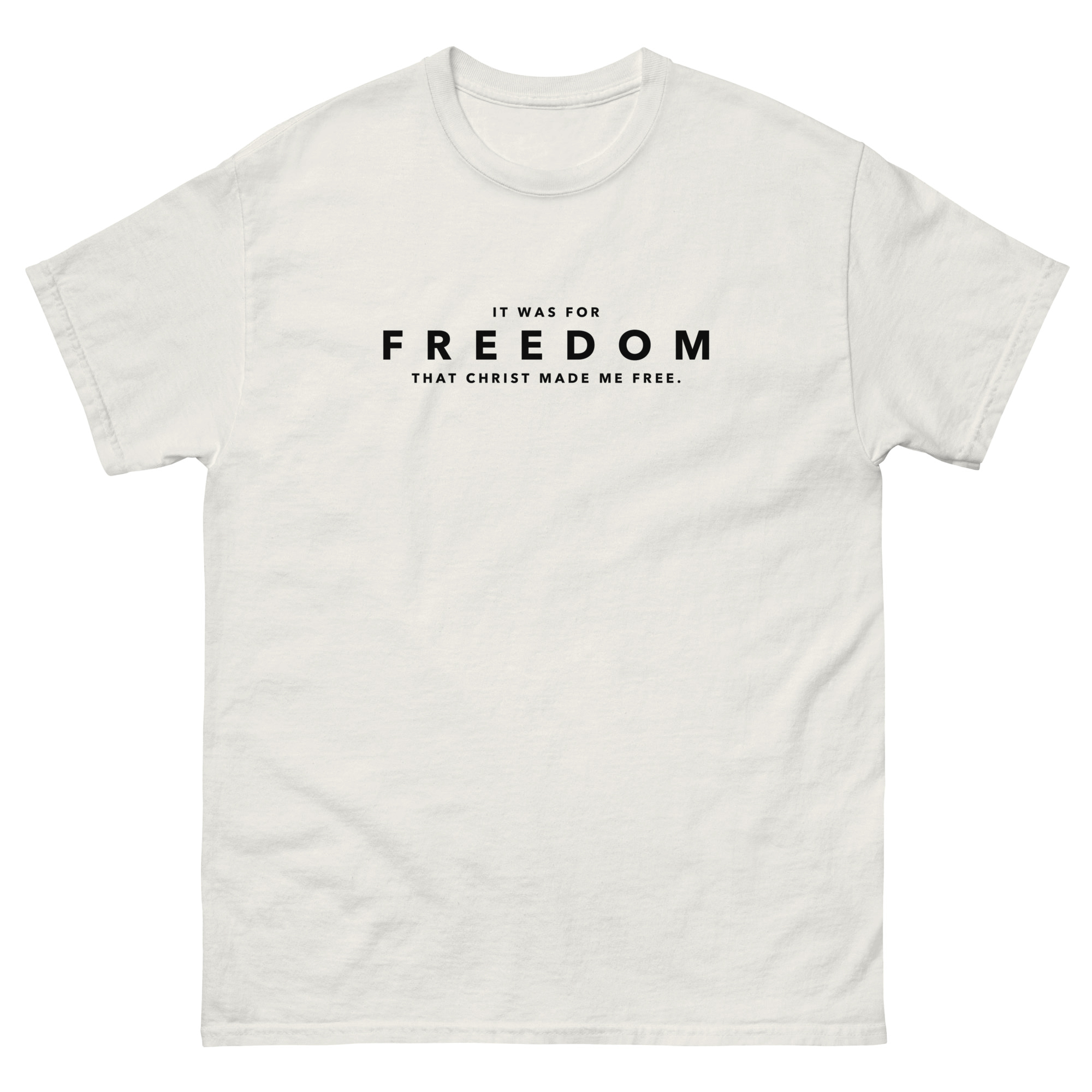 The 100% cotton unisex classic tee will help you land a more structured look. It sits nicely, maintains sharp lines around the edges, and goes perfectly with layered streetwear outfits. Plus, this biblical take on the timeless FREEDOM them is always in style!